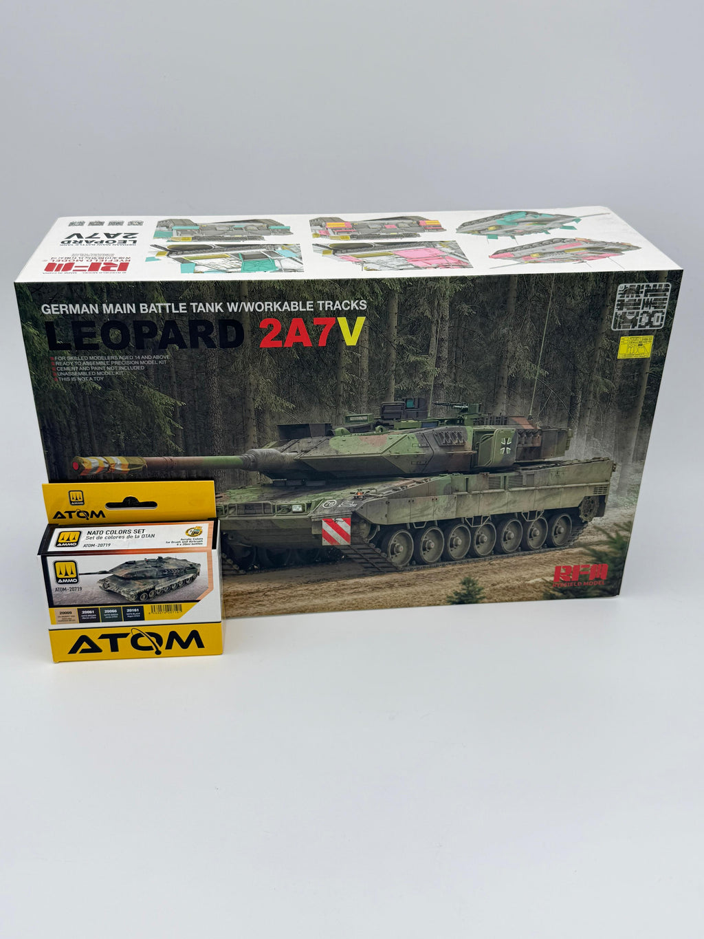 Conjunto de Leopard 2A7V escala 1:35 mas set ATOM de colores acrílicos para vehículos OTAN